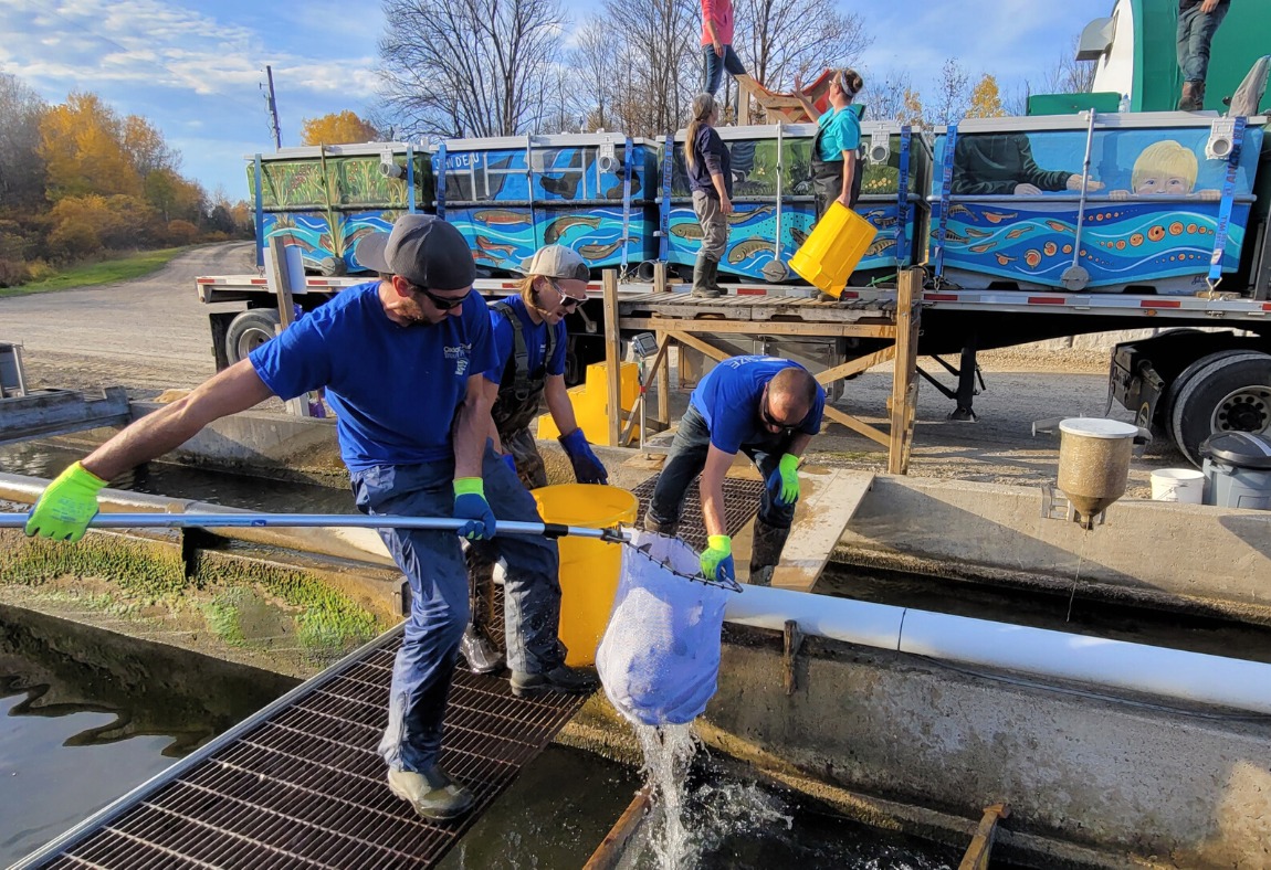 This week we’re loading 6,000lbs of trout that will head to Quebec. They’ll take a 10-hour journey in transport tanks with plenty of fresh water and oxygen. Once they get there, they’ll be released into private lakes for the province’s booming hunting & fishing tourism sector.